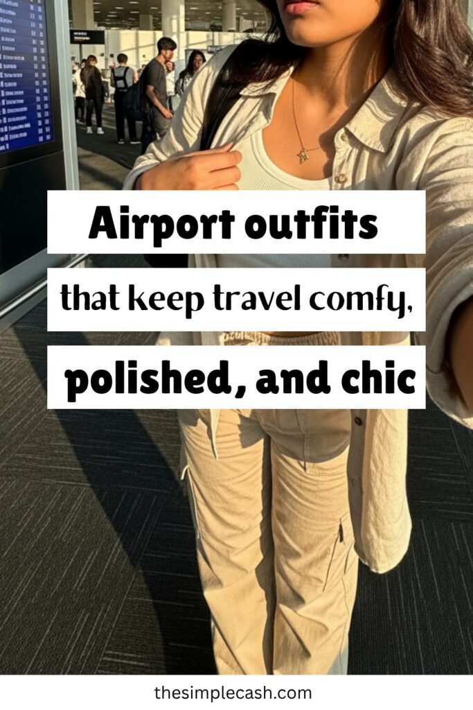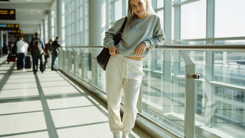 Keep your look clean and functional. Comfy pants, a cute tee, and a layer if needed—that’s all you really need. Neutral colors, soft fabrics, and easy silhouettes work best. Don’t pile on accessories or high-maintenance pieces. The simpler your outfit, the better you’ll feel moving through the airport.