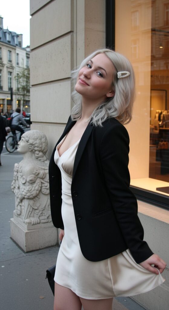 A satin mini slip dress already makes you feel soft and pretty, and layering a structured blazer over it gives that perfect balance between feminine and powerful.