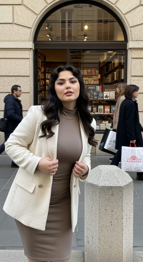 A turtleneck bodycon dress already hugs in the best way, and when I layer a tweed blazer on top, it feels polished and put together.