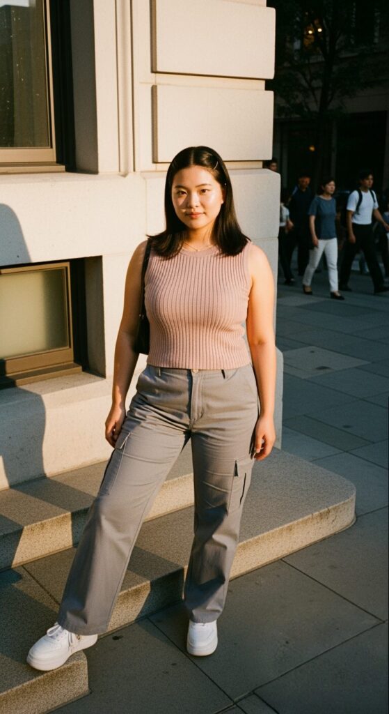 Cargo Pants + Sleeveless Knit Top