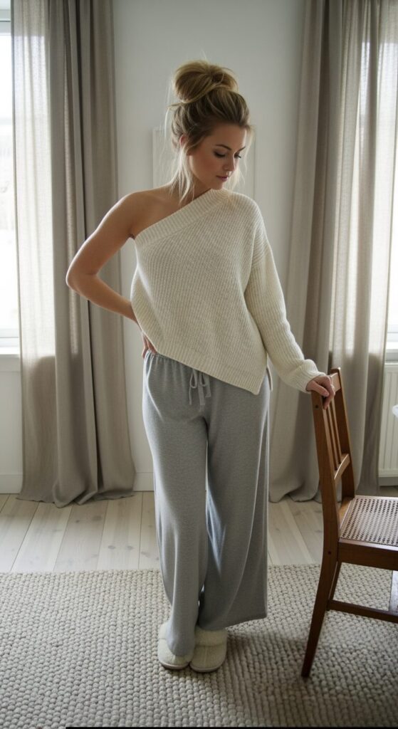 This is the ultimate winter lounge outfit—perfect for lazy days at home when you want to feel warm, relaxed, and put-together without any fuss.