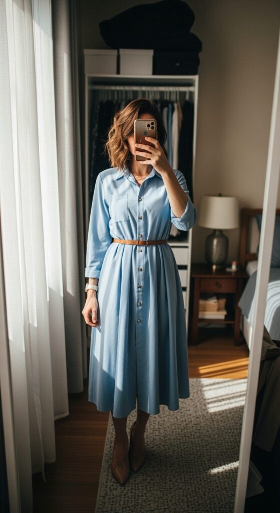 A shirt dress is truly a wardrobe hero. I love how it’s minimalist but still polished, especially when paired with a thin belt and classic pumps.