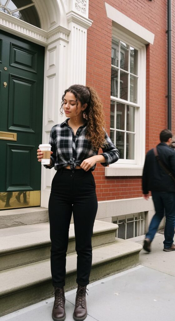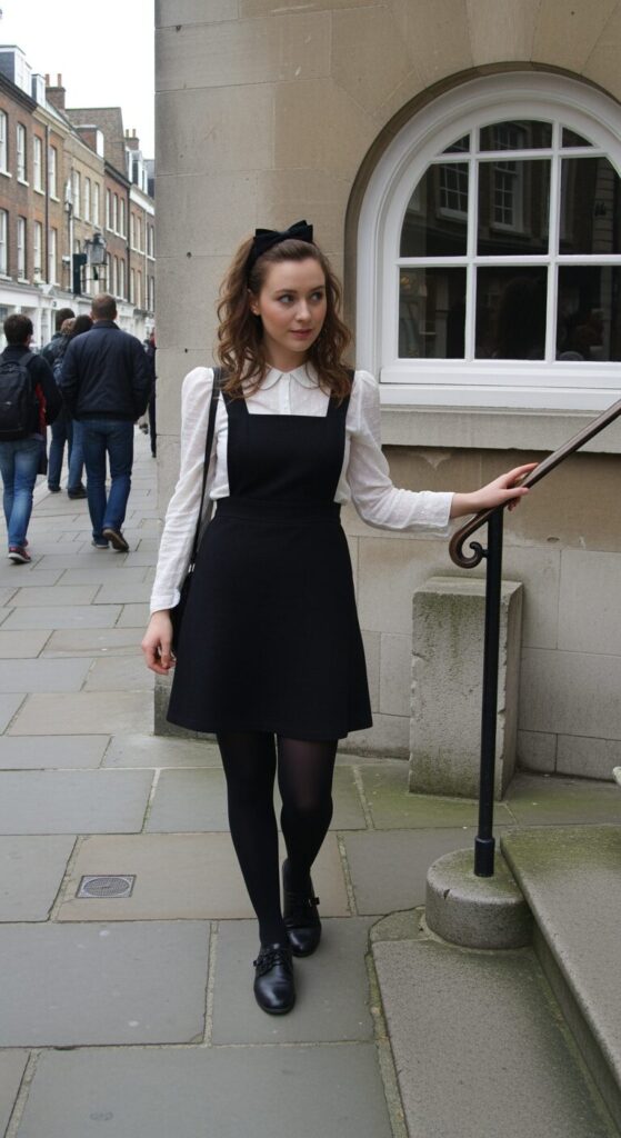 You can pair it with Mary Janes or ankle boots, and instantly feel like you’re walking through a university corridor straight out of a movie.