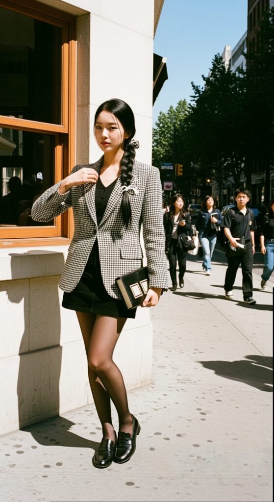 I swear this look gives you instant academic energy. When you throw on a houndstooth blazer, it feels like you actually have your life together.