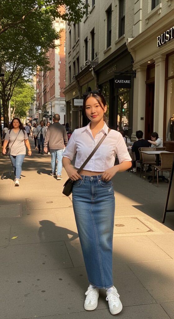 I absolutely love how a simple cropped shirt paired with a denim skirt can instantly make a casual day feel stylish.