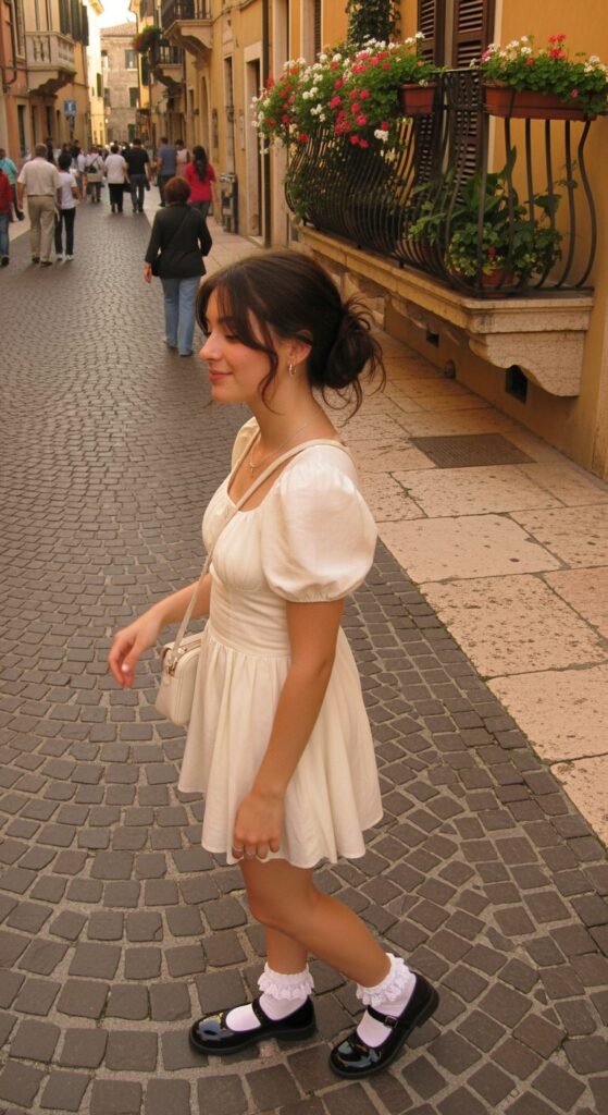 White sneakers keep it practical for walking without ruining the look. Add a woven crossbody bag, and you’ve got that relaxed European balance of style and function. Perfect for exploring Prague’s old town or grabbing lunch in Split, Croatia.