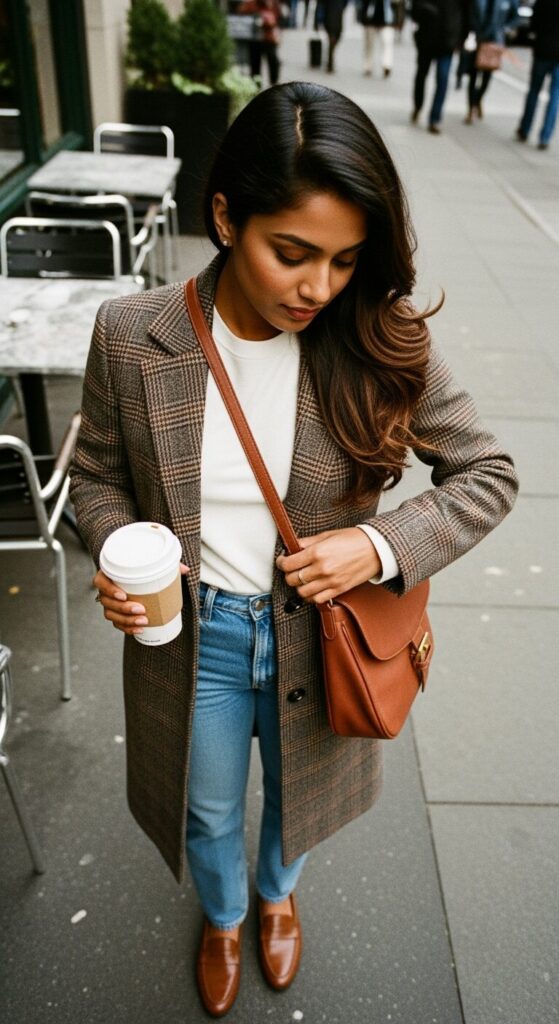 This look totally gives fall city vibes. I love how the plaid scarf makes a classic autumn statement—you can just toss it over your shoulder or let it hang loose for that effortless feel.