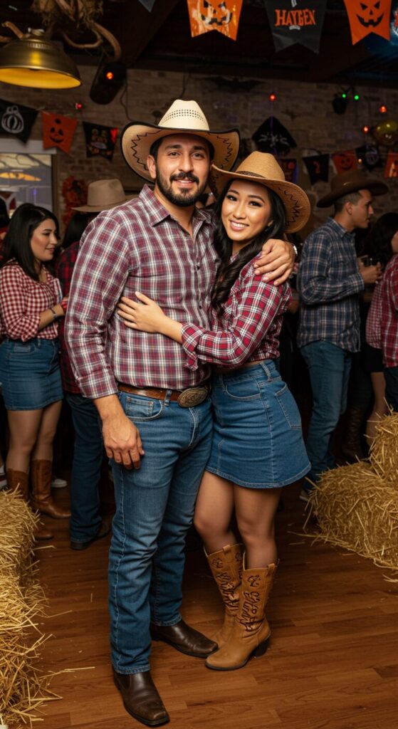 If you want something super easy and affordable, this is the one. Jeans, boots, plaid, and a hat. Done. It’s cozy, it’s comfortable, and it works for any Halloween setting.