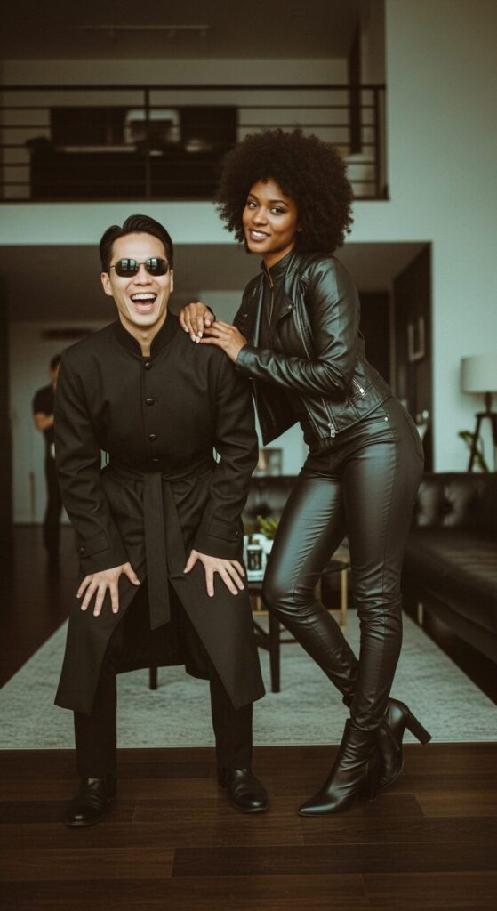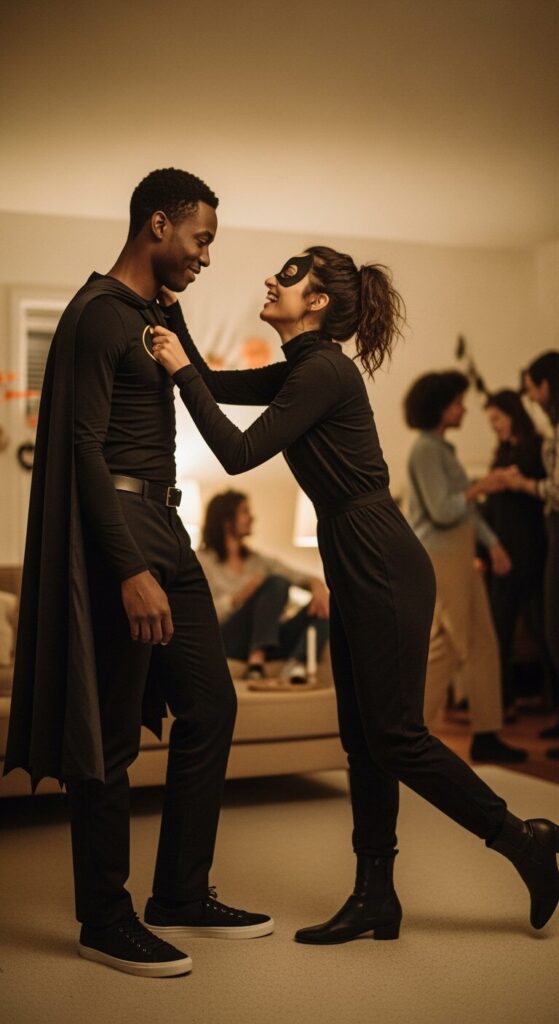 This one is bold, dramatic, and a little sexy. I like it because it lets you two play with a bit of mystery and attitude. You don’t even have to buy a full costume. A few key pieces can make the look. Instantly cool and perfect for Halloween.