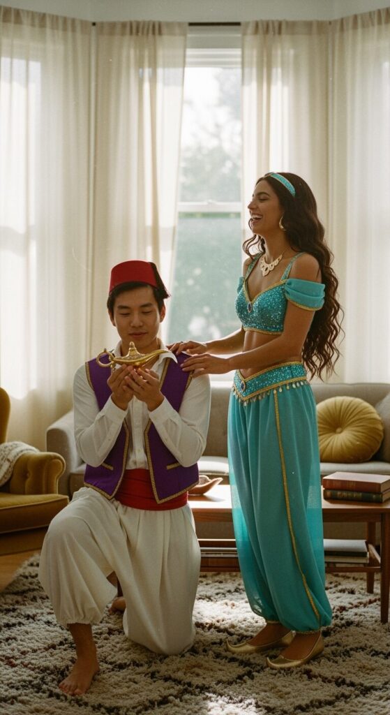 This is such a romantic option. If you want to lean into fairytale vibes, this is the one to pick. The costumes are colorful, magical, and they give you that Disney nostalgia. I love how fun and recognizable it is.
