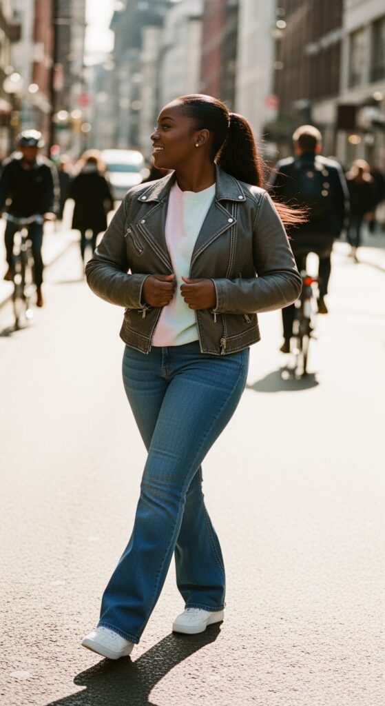It adapts to you. No matter if you’re dressing for work, a night out, or just running errands, a leather jacket pulls your outfit together and makes it feel intentional.