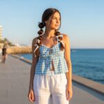It’s a fresh, summery look that’s perfect for day-to-night wear — breathable, comfortable, and undeniably chic.