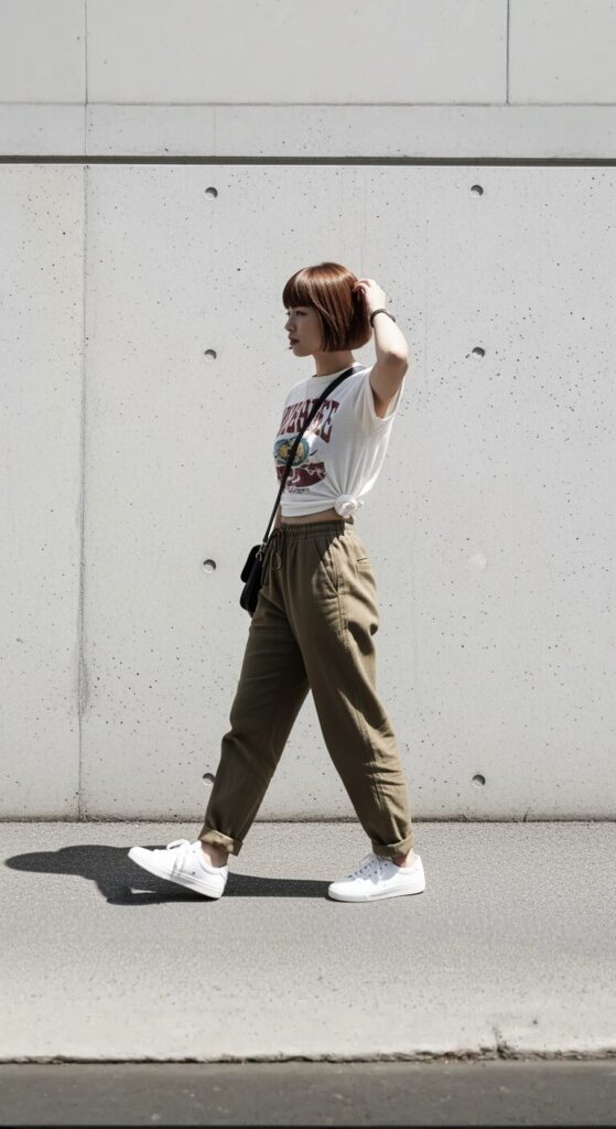 Sneakers also work surprisingly well with linen pants, especially when styled with a cropped tee or tank. They add a sporty contrast to the softness of linen.