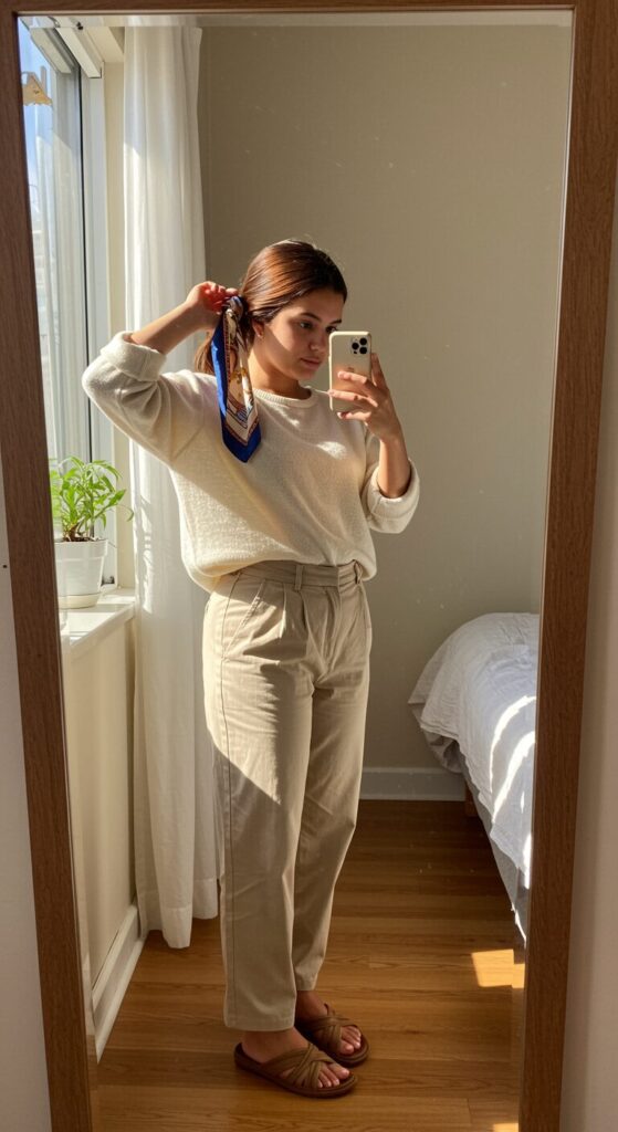 I hope this post inspires you to play with scarves in your own wardrobe. You do not need complicated pieces to look stylish.