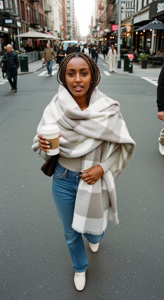 I absolutely love the oversized blanket scarf because it instantly makes you feel cozy and stylish at the same time. You can literally wrap yourself up in it like a warm hug and still look put together.