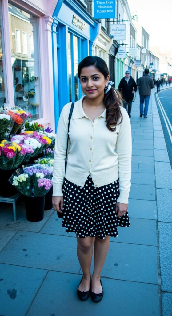 Collared Cardigan + Polka-Dot Skirt