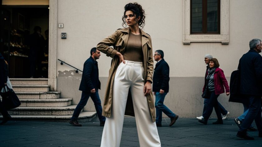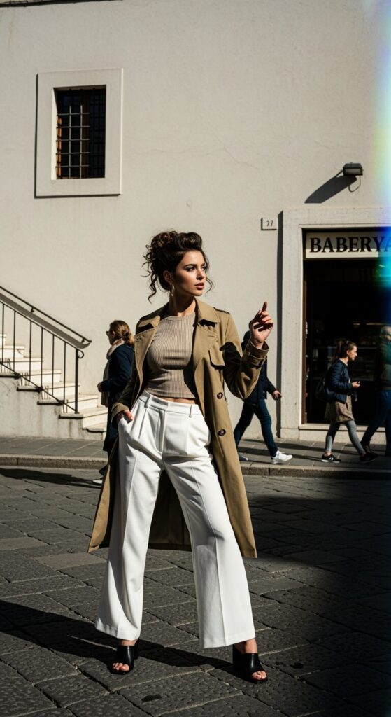 Wide-Leg Pants and Trench Coat