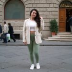The white crop top makes it clean and fresh. The black leather pants add the drama. And the aviator jacket just elevates everything.