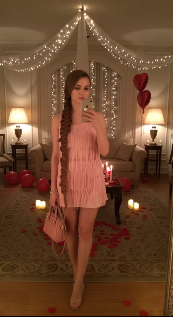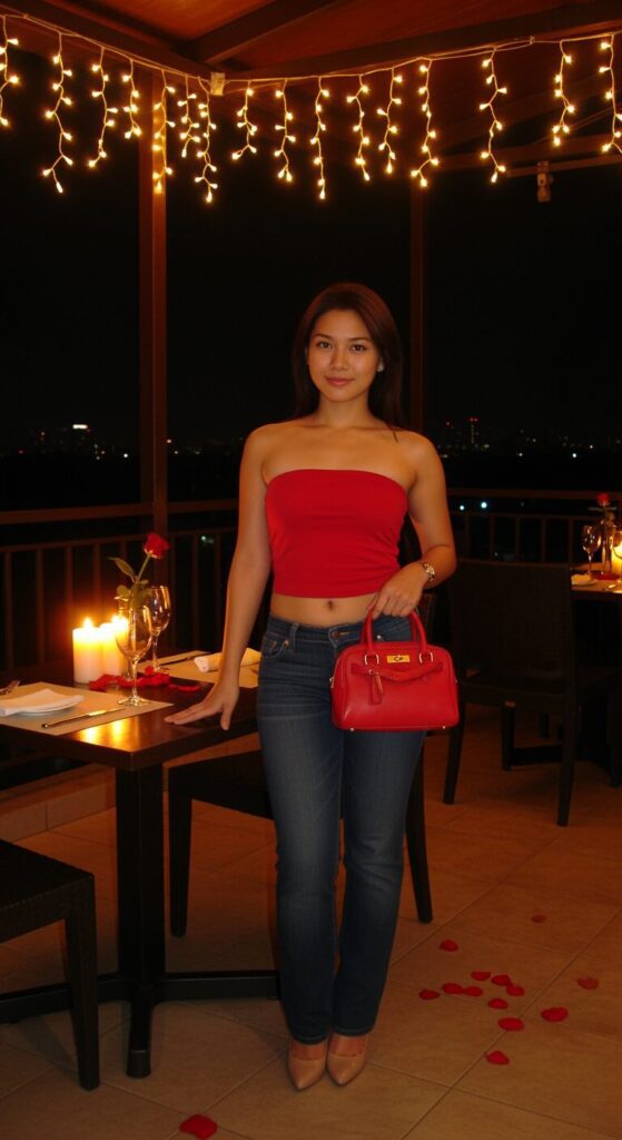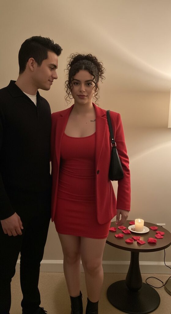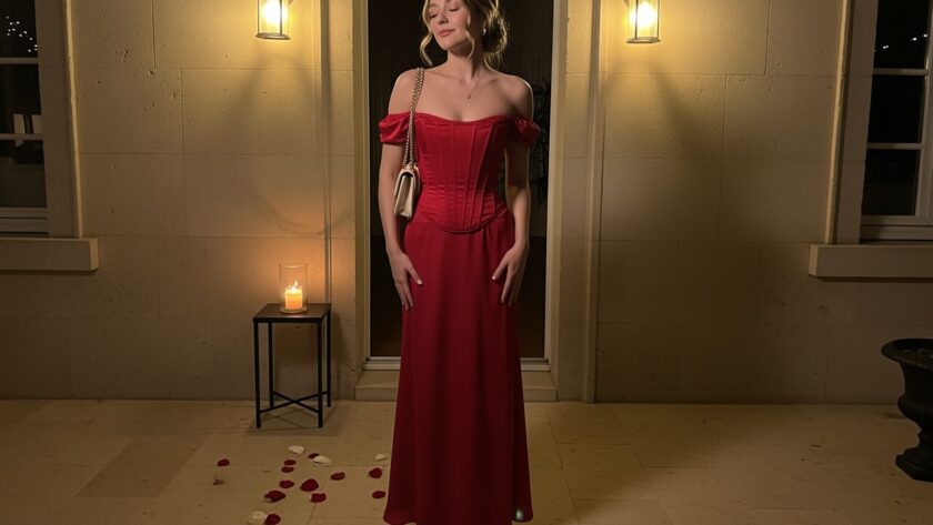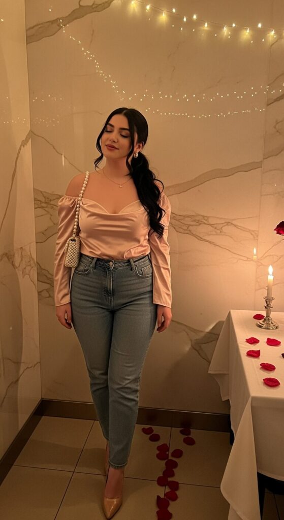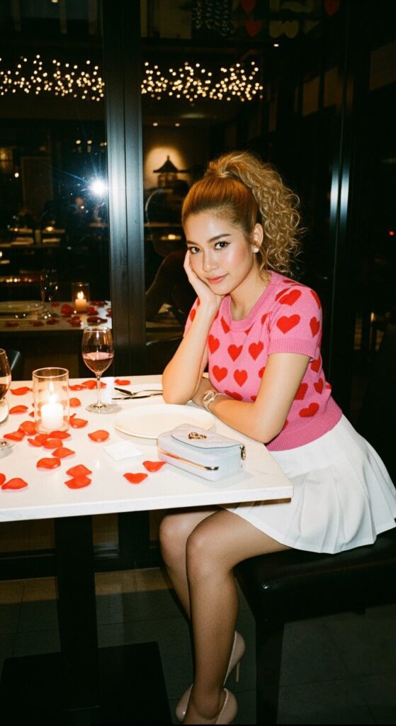I’d throw on a small shoulder bag, walk naturally, maybe flip your hair a little, and you’re ready to slay any romantic night.