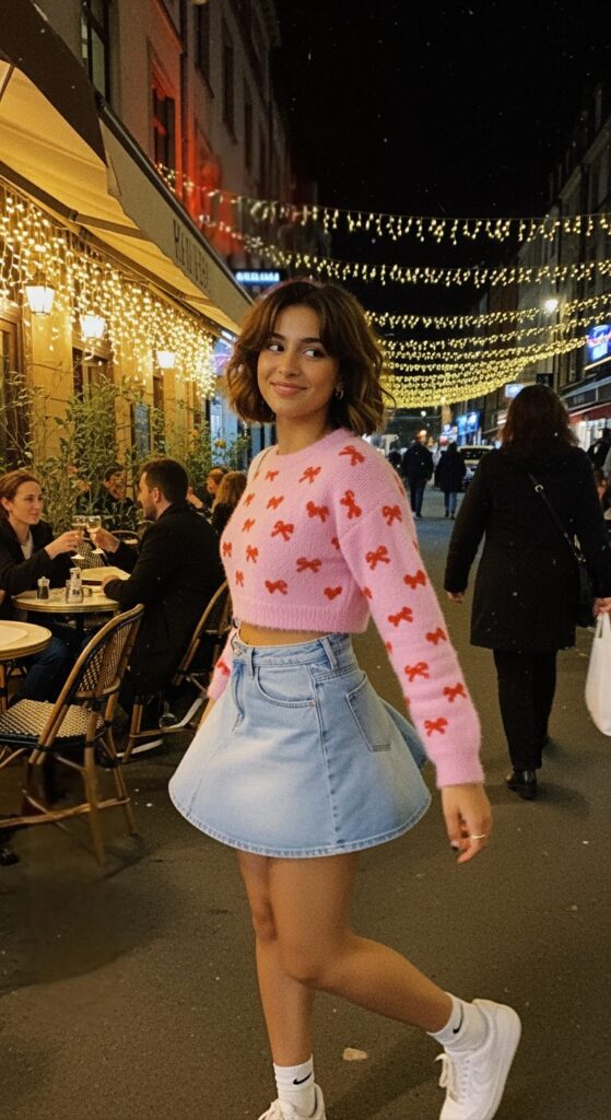 I’d pair it with heels or sneakers, toss a tiny shoulder bag, and just own the casual cozy Valentine’s vibe.