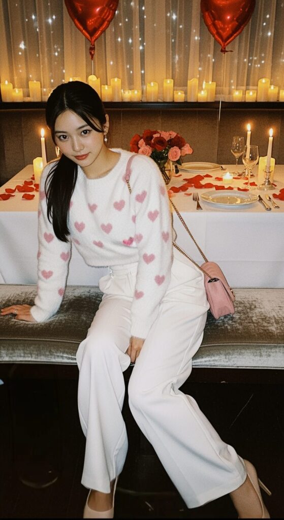 I’d add a shoulder bag and sneakers or heels, and honestly, it’s perfect for a casual Valentine’s night or brunch date.