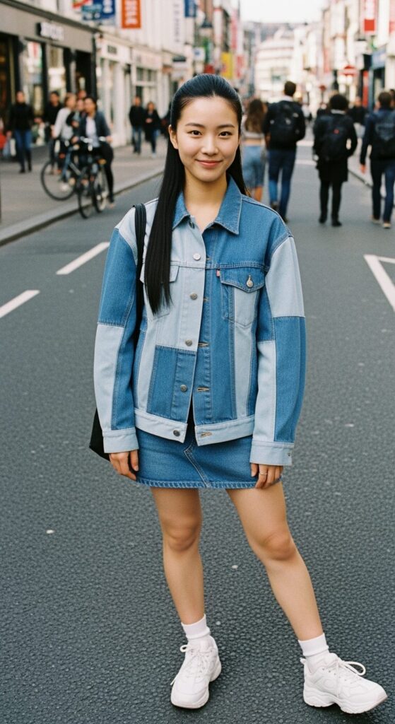 I adore denim-on-denim, and patchwork just makes it so fun. You can style a patchwork jacket over a classic denim mini skirt to give a playful twist to a Y2K staple.